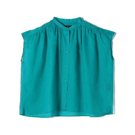 ギャザーをたっぷり施した程よくゆったりしたシルエットのバンドカラーブラウス。