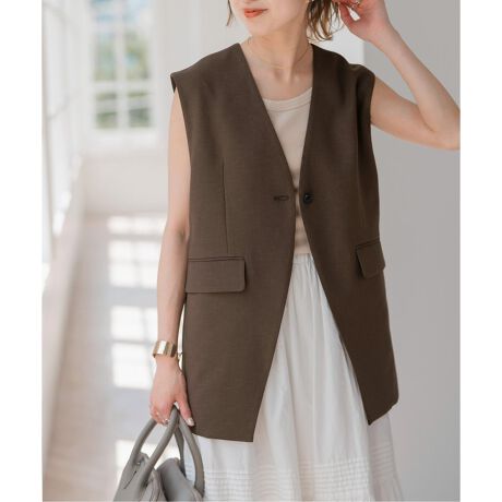 縦長シルエットがすっきり見えを叶える、Vカラージレ。