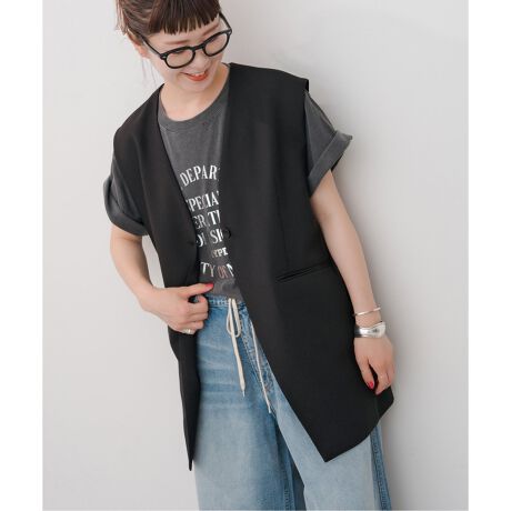 Vカラーロングジレ