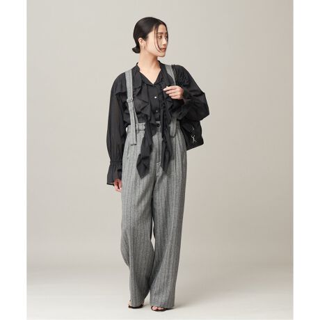 【金子綾さん着用】シルクネップツイード/ドビー サスペンダーパンツ