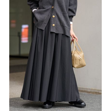 程良くハリのある綿ナイロン素材で、甘さを抑えた大人のギャザースカートに仕上げました。