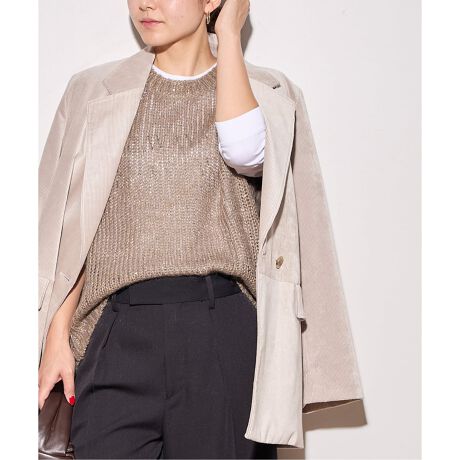 モヘア混で軽めの素材を使用し、Tシャツやシャツとのレイヤードで秋口から秋らしい雰囲気が楽しめる一枚。