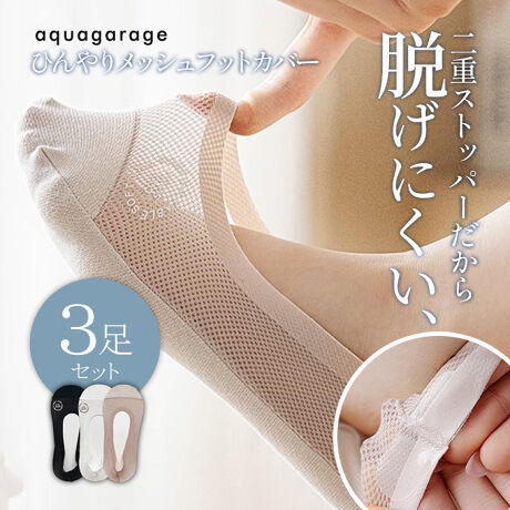 [型番:ki00054]通気性の良いメッシュデザイン♪ 3足セットメッシュフットカバー。甲側が通気性の良いメッシュ素材になっているので夏にぴったり♪滑り止め付きで歩行中も靴下がズレにくく足元を気にせず過ごせます!衛生上返品をお受けすることは出来かねますので、何卒ご了承の程よろしくお願い申し上げます。
