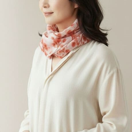 ファッションに合わせて、首の前で前で留めるスタイルも。外出時や運転時、ガーデニングにぴったり。様々なシーンでご活用いただけます。