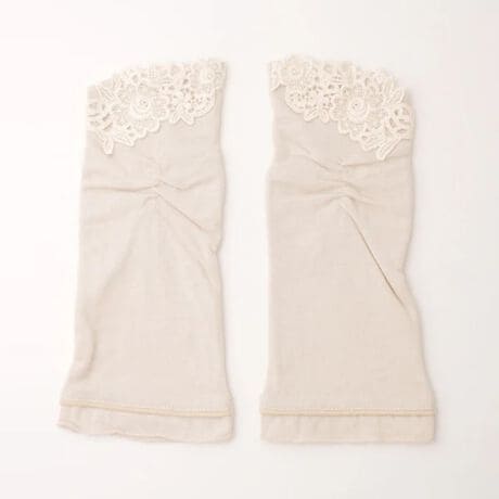 S052 指先フラワーレース UVアームカバー手袋 ショートサイズ