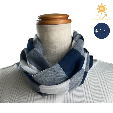 チェック柄が大人の色気と立体感をプラスします。首周りを紫外線から守るスカーフ。誰でも簡単に巻けるように、首の後ろにあるマジックテープを留めるだけでふんわりオシャレにまとまります。