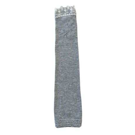 生地と同色のフリルを3段に仕立て、指先にレースを施した、上品なロングサイズの手袋。