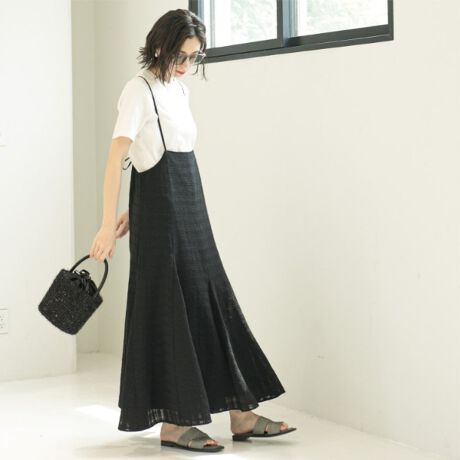 ・シアーチェック素材を使用したキャミソール型ワンピース。