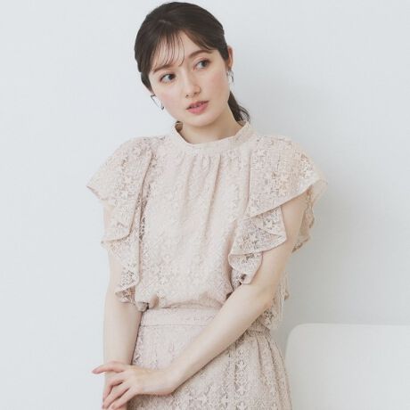 繊細なジオメレースが上品なフレアスリーブブラウス
