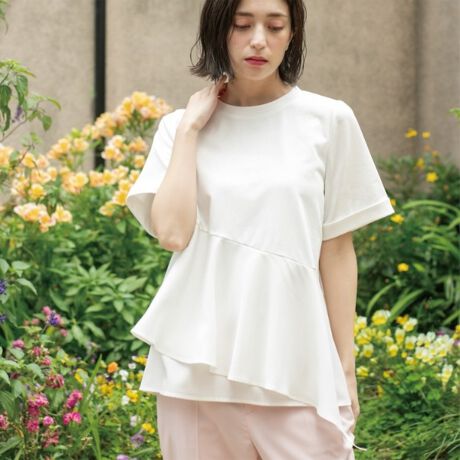 アシンメトリーヘムが目を惹くドッキングデザイントップス
