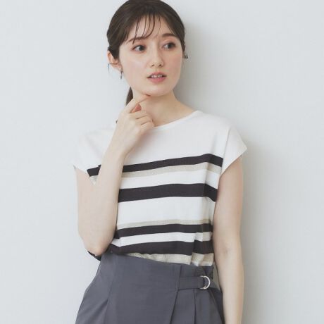 ランダムボーダーと無地、ラメを組み合わせたアソートフレンチスリーブニット