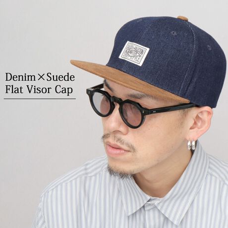 フェイクスエードつば デニム 平つば ベースボールキャップ