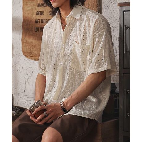 【トレンドのルーズ感たっぷりのオーバーサイズ レースシャツ】