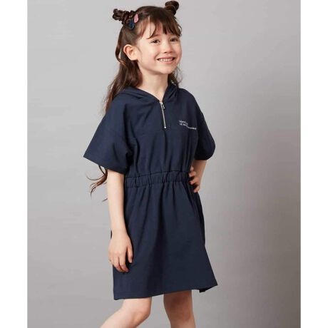 【接触冷感/ジメジメ対策/毛玉になりにくい】[160]ハーフジップフーディワンピース