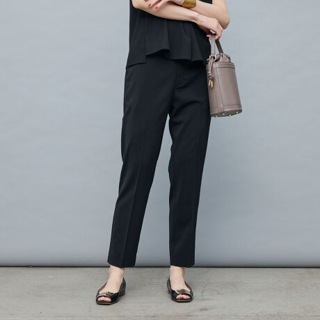 ・センタープレス入りのすっきりとしたテーパードパンツ