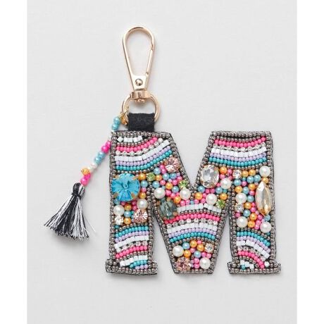 [型番:IJCP5201-2025]シードビーズやビジューパーツの装飾が可愛いイニシャルチャーム。 フック付きで携帯やバッグなどにもつけられます。ギフトにもおすすめ。