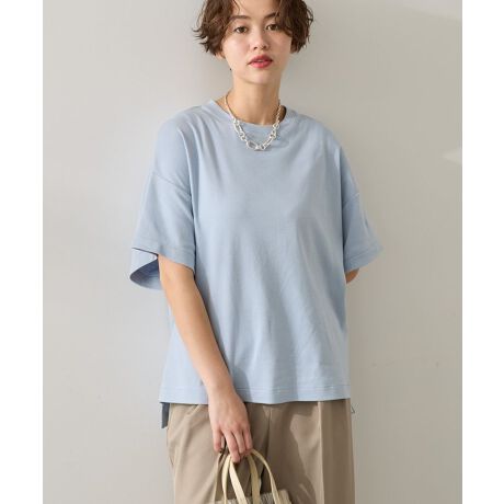 触れるとひんやり涼しい、接触冷感素材で仕立てたTシャツ。ゆったりとワイドなボックスシルエットで、ラフな着心地が魅力です。オーソドックスなディテールながら、サイドスリット入りの前後差を付けたヘムラインがこなれ感あるアクセントに。さらりと肌触り良く、夏のシーズナルなコーディネートにぴったりなおすすめアイテムです。