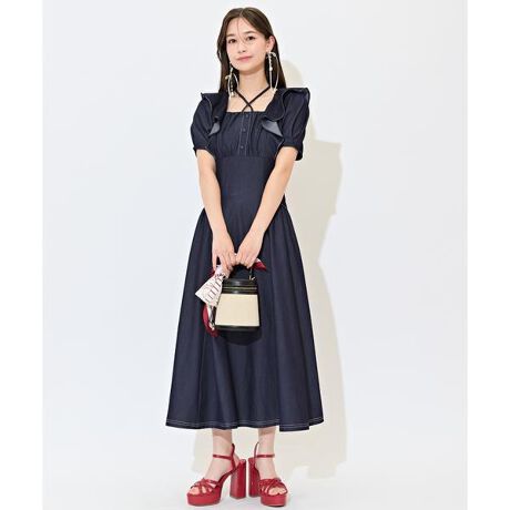 クラシカルな魅力とフェミニンなディテールが詰まった、大人可愛い主役ワンピース【Design】・フロントボタンとふんわり広がるフレアシルエットがクラシカルな印象を演出するワンピース。・デコルテを美しく見せるスクエアネックに、チョーカー風のネックリボンで上品なアクセントをプラス!・華やかさを添えるラッフルフリルが、女性らしさを引き立てます。・タック仕上げの袖口が丸みのあるスリーブラインをつくり、フェミニンな雰囲気♪・ギャザー切替のウエストから流れるように広がるフレアが、柔らかくエレガントなシルエットを描きます。・背面ファスナーで着脱しやすく、ウエストのバックシャーリング&レースアップでサイズ調整も自在◎【Fabic】・しなやかさのあるポリエステル素材を使用。・裏地付き。・ホワイト、カーキ、ネイビーの3色展開となります。【Care】ドライクリーニング