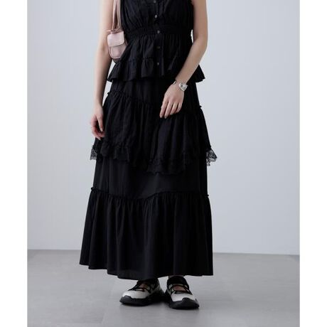 ティアードシルエットに今年らしいイレギュラーヘムディテールを加えた今年顔のマキシスカート。イレギュラーヘムの裾にアンティーク風のレースを付けてポイントをプラス。裏地付きなので透け感を気にしないで着ていただけます。夏はプリントTシャツ・デザインニット・タンクトップを合わせ、秋冬は毛足のあるニット合わせもおすすめ。同素材のレーストリムコットンキャミソール(店舗商品番号131-5210057 )を揃えるとワンピース風にも楽しめます。ヴィンテージライクな粗野で細番手の軽やかなコットン生地を使用。ウォッシャブル加工を施して柔らかく仕上げています。※モデルの着用画像の場合、光の当たり具合により、実際の色味と異なって見えることがございます。色味は、商品単体の画像をご参照ください。