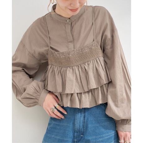 フリルキャミソールとセットになったキャッチー感のあるフェミニンブラウス。