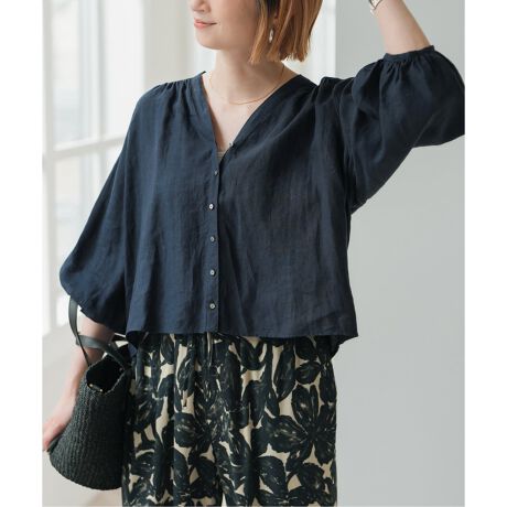 麻100%で夏にうれしい爽やかなブラウス。