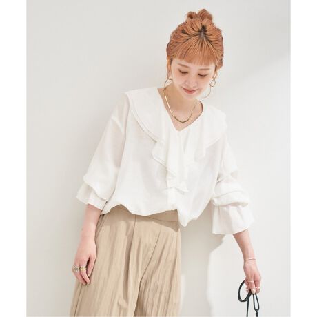 マルイウェブチャネル   /   ベーセーストック   /   トップス   /   シャツ   /   ウォッシャブル / R/NYラッフルフリルブラウス