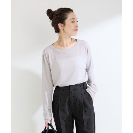 スラブ調の透け感のある生地で、身体のラインは拾わず程よいゆとりあるシルエットで一枚着しやすいシアーアイテムとなっております。