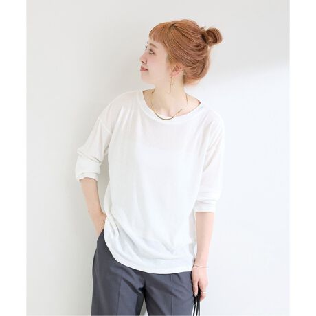 ややゆとりのあるシルエットのスラブシアーロンTEE。