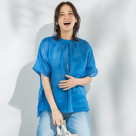 ほんのり透ける軽やかさが魅力のギャザーブラウス。