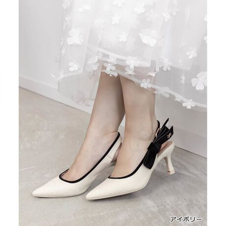 クラシカルな印象のリボンバックストラップパンプス。