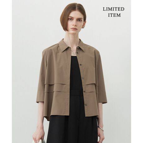 ■デザインレイヤードディテールがトレンド感のあるクロップドシャツです。カジュアルにもマニッシュにも着こなせ、ワイドパンツやボリューム感のあるボトムスとの相性も抜群です。