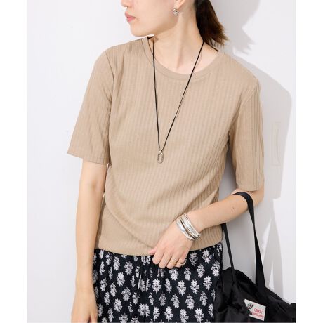 細身のシルエットとつやのある表面感で、Tシャツですがキレイめな印象で着用できます。