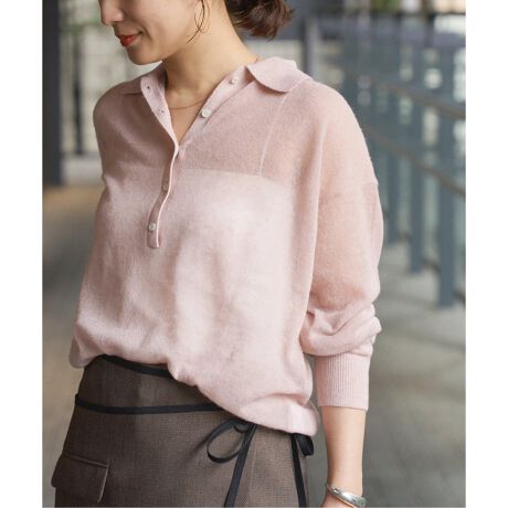 今シーズンも引き続きムードの高い襟付きニット。肌触りが良くアルパカのへアリー感があり、程よい透け感なので、タンクトップやキャミソールをインナーにしてシアー感を楽しんだり、シャツとのレイヤードも◎