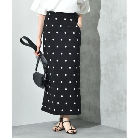 着回し力抜群のモノトーン柄のスカート。シーズンレス、トレンドレスなのが人気のポイントです。ストレッチ性に優れストレスフリーな着心地も◎またバランスの良い着丈ですっきりシルエット!バックに施したスリットで足さばきも良くこなれたスタイルが完成します。