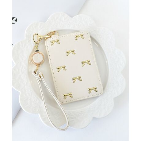 ・小さなリボンがガーリーなパスケース。