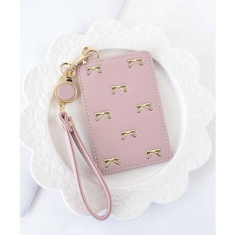 ・小さなリボンがガーリーなパスケース。