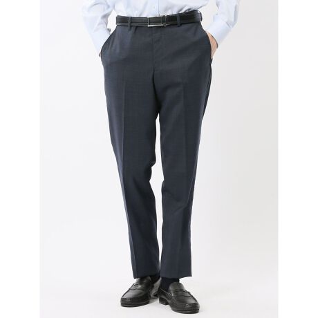 【ストレッチ】【マシンウォッシャブル】タカキュー ウール混 ノータック ビジネスパンツ 小柄紺