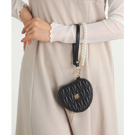 ・パールとキルトの組み合わせがレディライクなハート型ポーチ。