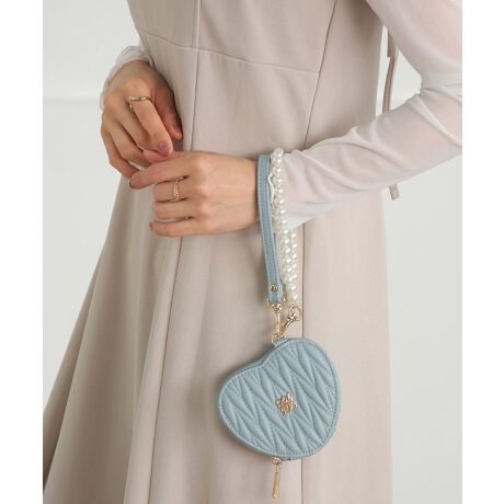 ・パールとキルトの組み合わせがレディライクなハート型ポーチ。