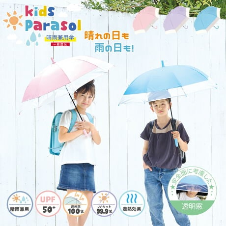 マルイウェブチャネル   /   ナチュラルベーシック   /   傘・レイングッズ   /   日傘   /   【キッズ日傘】UV 50cm 完全遮光 子供用日傘 安全窓付き