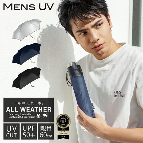 メンズ向け晴雨兼用傘。雨の日も、日差しの強い日も、いつでも使えるシンプルなデザイン。