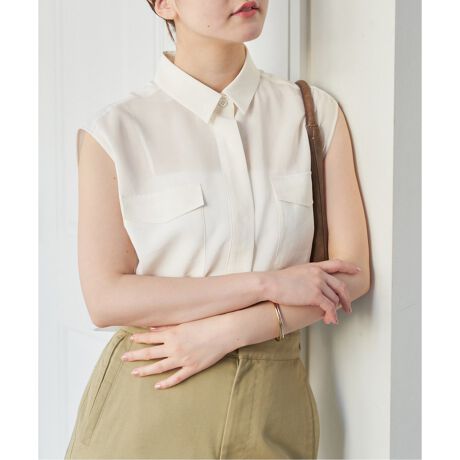 涼しげな透け感ときちんと感を両立した、ノースリーブシャツ