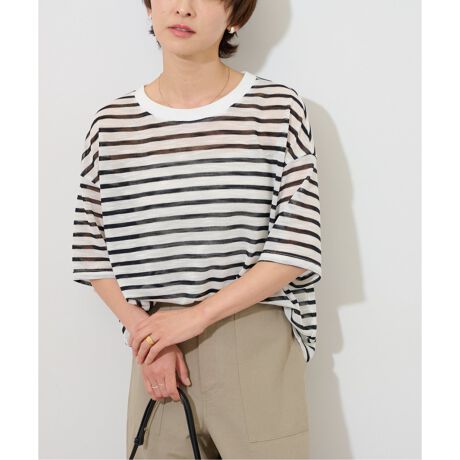 透け感のあるシアー素材が女性らしい印象を与える「シアーカットTEE」。