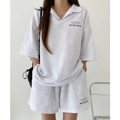 【トレンドのワンポイントロゴ セットアップ ジップアップポロシャツ&ショートパンツセット】