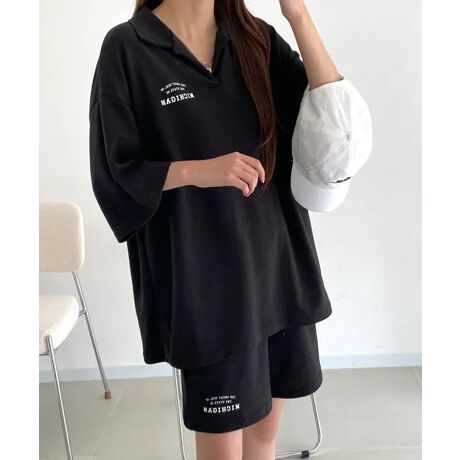 【トレンドのワンポイントロゴ セットアップ ジップアップポロシャツ&ショートパンツセット】