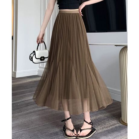 表側は軽やかなチュール、裏側はきれいめなプリーツ仕立て。