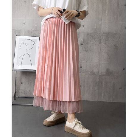 表側は軽やかなチュール、裏側はきれいめなプリーツ仕立て。