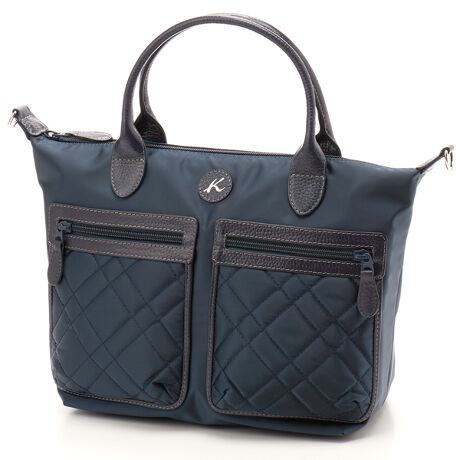 ポケットのキルティングがポイントの2WAYナイロンハンドバッグ。