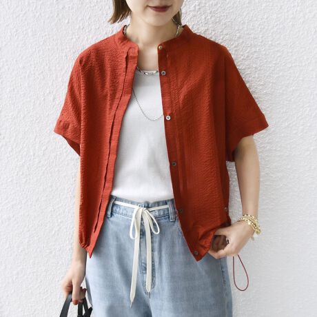 前裾はドロスト仕様で絞ることが可能で、ボトムやその日の気分に合わせて楽しめるブラウス。