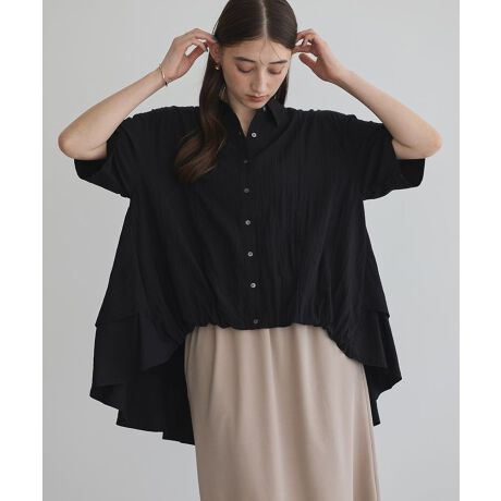 フロントの裾バルーンにテールロングヘムのティアードデザインがお洒落なポイント。